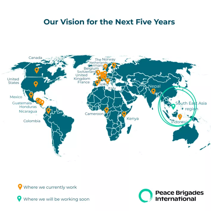 PBI ist mehr als eine Organisation, es ist eine Bewegung. Über Kontinente hinweg arbeiten Freiwillige, Mitarbeiter:innen und Netzwerkpartner:innen Seite an Seite, um den Raum für die Zivilgesellschaft zu schützen und dauerhaften Frieden zu schaffen.