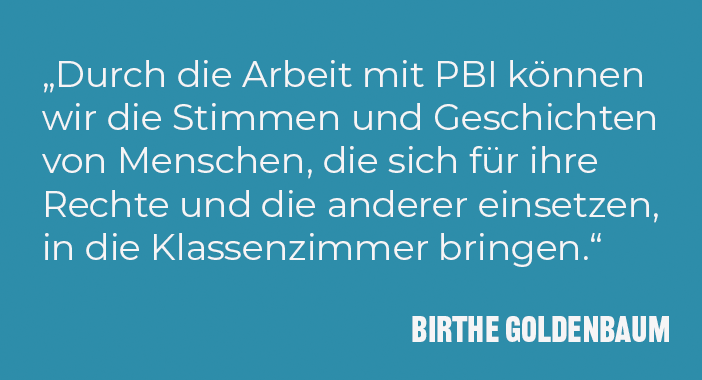 Zudem können Sie unseren halbjährlichen BiNe-Newsletter abonnieren, der Sie über aktuelle Bildungsangebote, interessante pbi-Veranstaltungen sowie unsere Aktionen im Bildungsbereich informiert.
